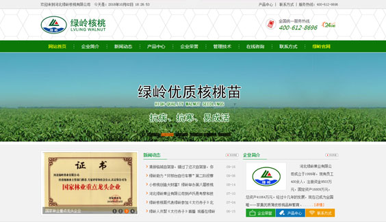 河北綠嶺果業(yè)有限公司成立于1999年,現(xiàn)有員工400余人,注冊資金9503萬元,固定資產(chǎn)16809萬元,總資產(chǎn)41064萬元。經(jīng)過十幾年的發(fā)展,現(xiàn)在已成為全國唯一一家集優(yōu)質(zhì)薄皮核桃品種繁育、種植、研發(fā)、深加工和銷售為一體的全產(chǎn)業(yè)鏈現(xiàn)代化大型企業(yè)。擁有綠嶺薄皮核桃20萬畝,苗木繁育基地2000余畝,是我國最大的集約化優(yōu)質(zhì)薄皮核桃生產(chǎn)基地;現(xiàn)代化的深加工車間9個,共10萬多平方米,建成了獨有的“河北省核桃工程技術(shù)研究中心”。