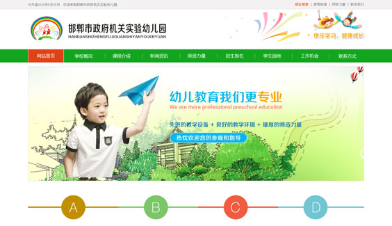 邯鄲市政府機關幼兒園創辦于1977年,分大、中、小三十五個教學班,有1300余名幼兒。在市政府等各級領導的關懷支持下,不斷擴大發展規模,是我市重點園所,并被省、市教委評為省“示范園”和市“一類”園所。現在是武漢大學“0歲方案”教育基地,是省婦聯婦女兒童活動教育基地。為均衡邯鄲市幼教布點與幼教發展,邯鄲市政府機關幼兒園正在籌辦新園市政府機關實驗幼兒園。