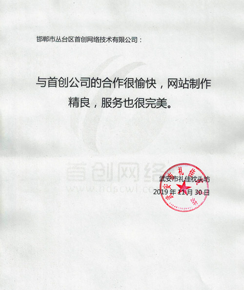 武安市禮佳枕頭坊對我公司評價